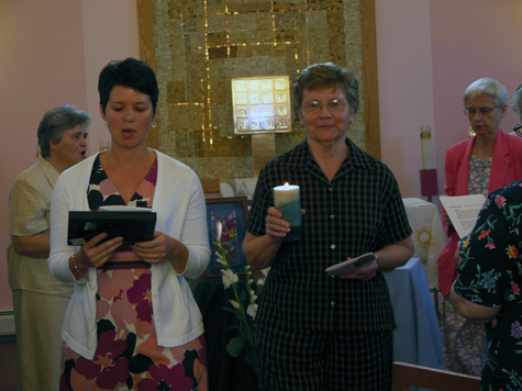 Jayne entering the chapel with her Vocation Director, Sr. Mary Catherine Redmond
